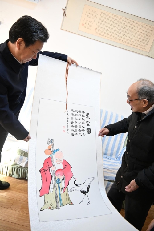王显东代表省统计局干部职工向程老及其家人致以新春美好祝愿。王显东表示,老同志是单位的宝贵财富,省局要把老同志的冷暖放在心上,工作抓在实处。要求离退休干部处以更优的作风,用心用情做好老同志服务保障工作。程老对组织的持续关心与温暖陪伴表达了衷心感谢。
