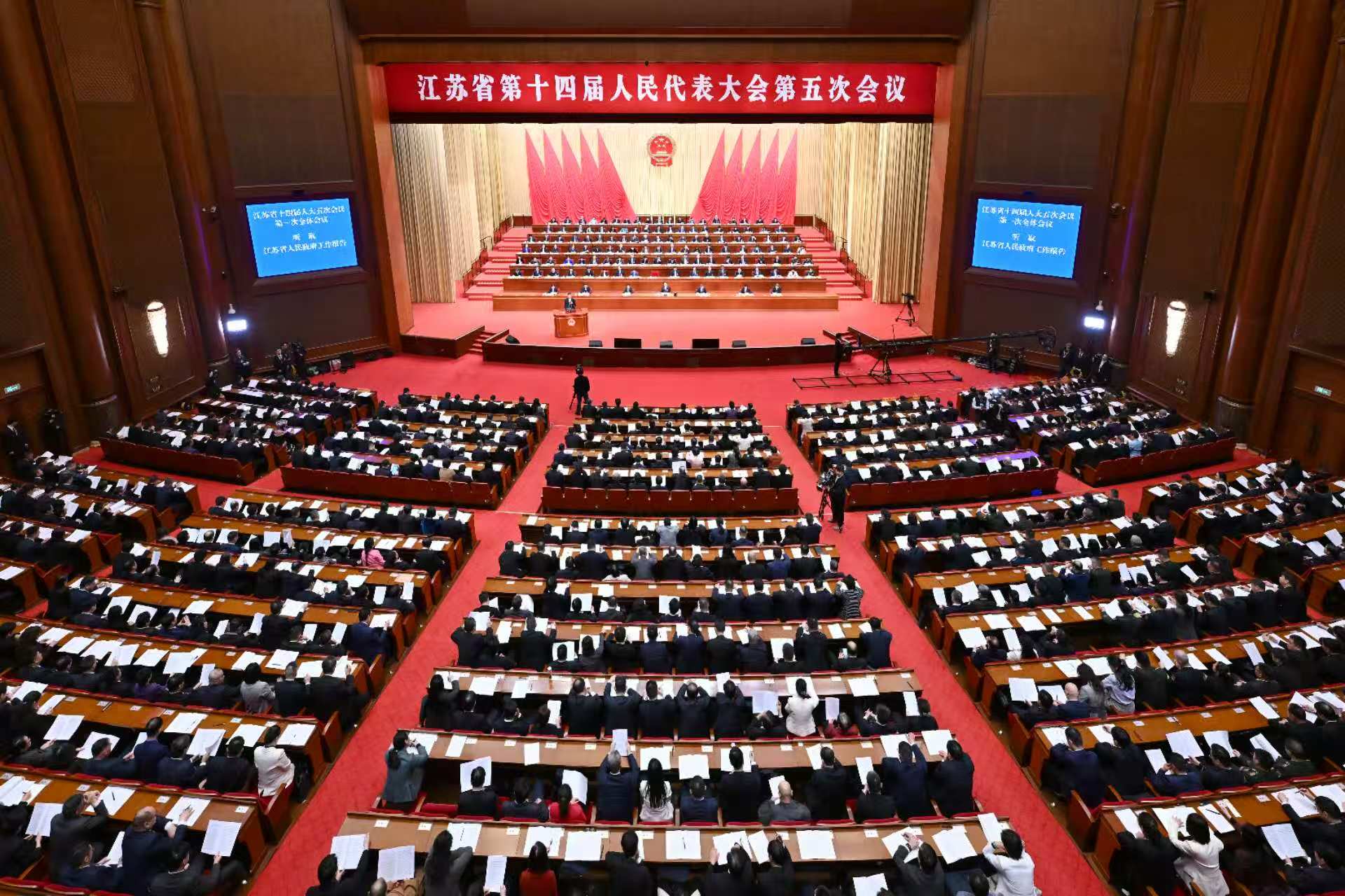 上午9时45分,信长星宣布:江苏省第十四届人民代表大会第五次会议开幕。全体起立,奏唱中华人民共和国国歌。