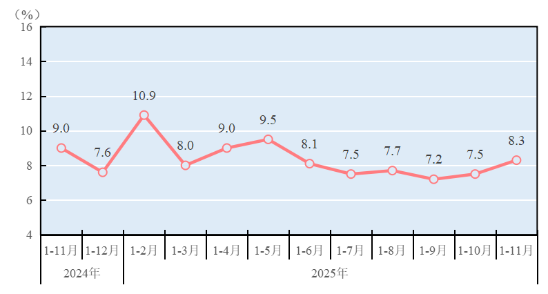 1—11月,全省规模以上服务业营业收入同比增长8.3%,列统的10个行业门类中,8个行业营业收入实现正增长;其中租赁和商务服务业,科学研究和技术服务业,水利、环境和公共设施管理业等行业实现两位数增长。